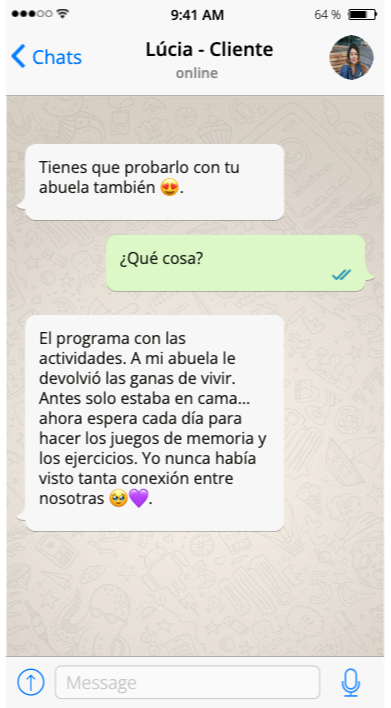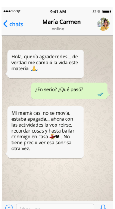 "Uso las actividades con mi mamá en casa. A ella le encantan y noto una mejora significativa en su disposición."