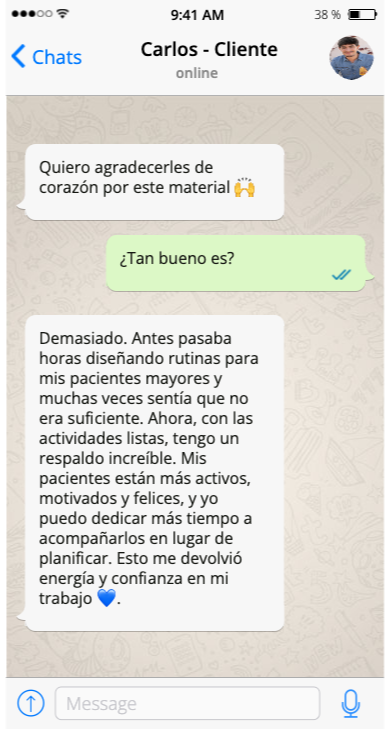 "Como profesor de educación física, necesitaba actividades específicas para adultos mayores. ¡Este material me ahorró horas de investigación!"